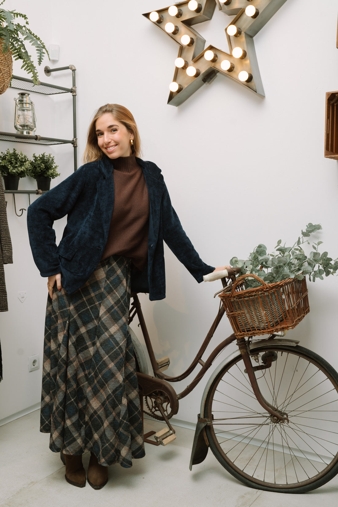 Blazer GLEZ micropana marino. Comodísimo tejido elástico 100% poliester. TU equivalente a S-M (La modelo utiliza T.S)