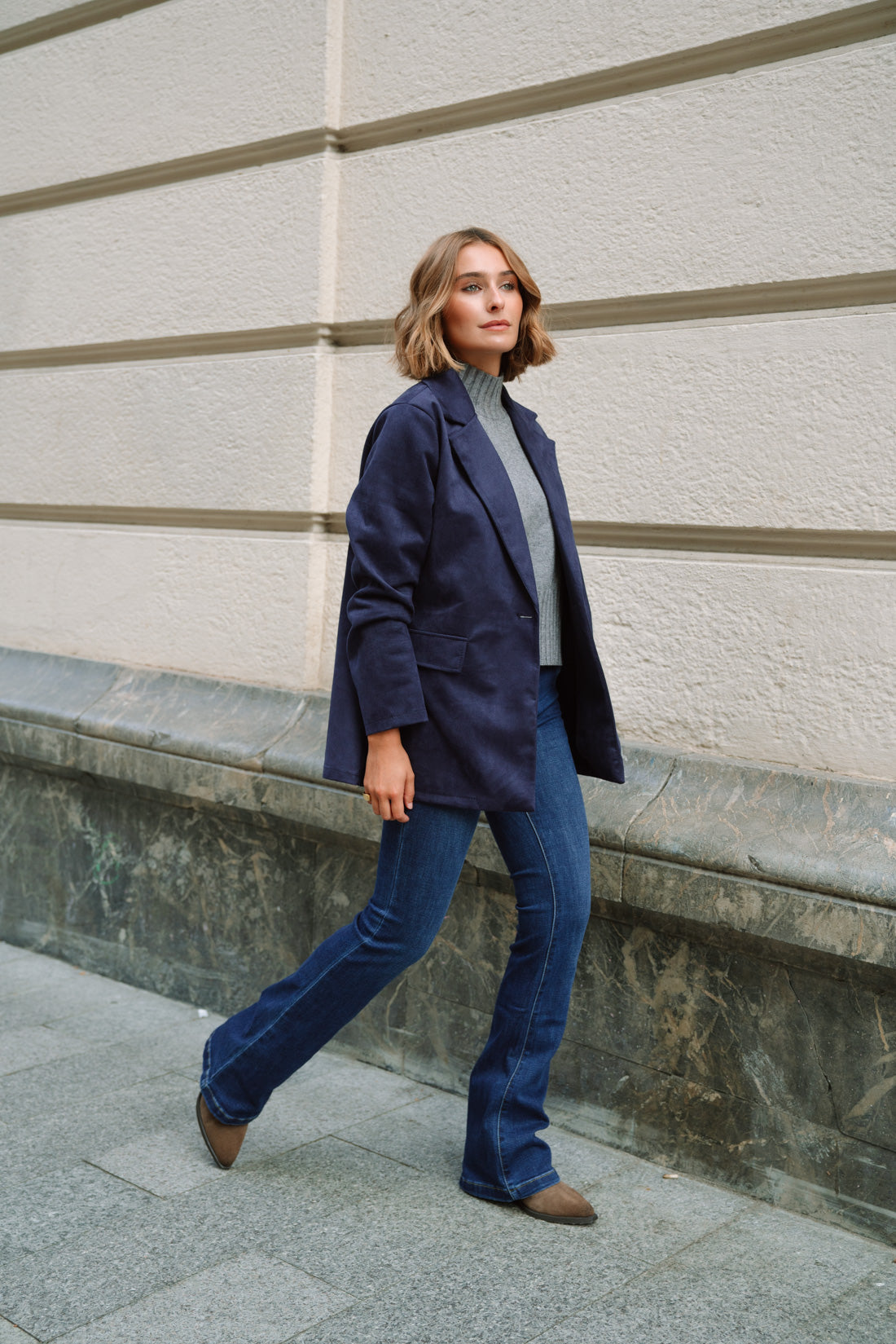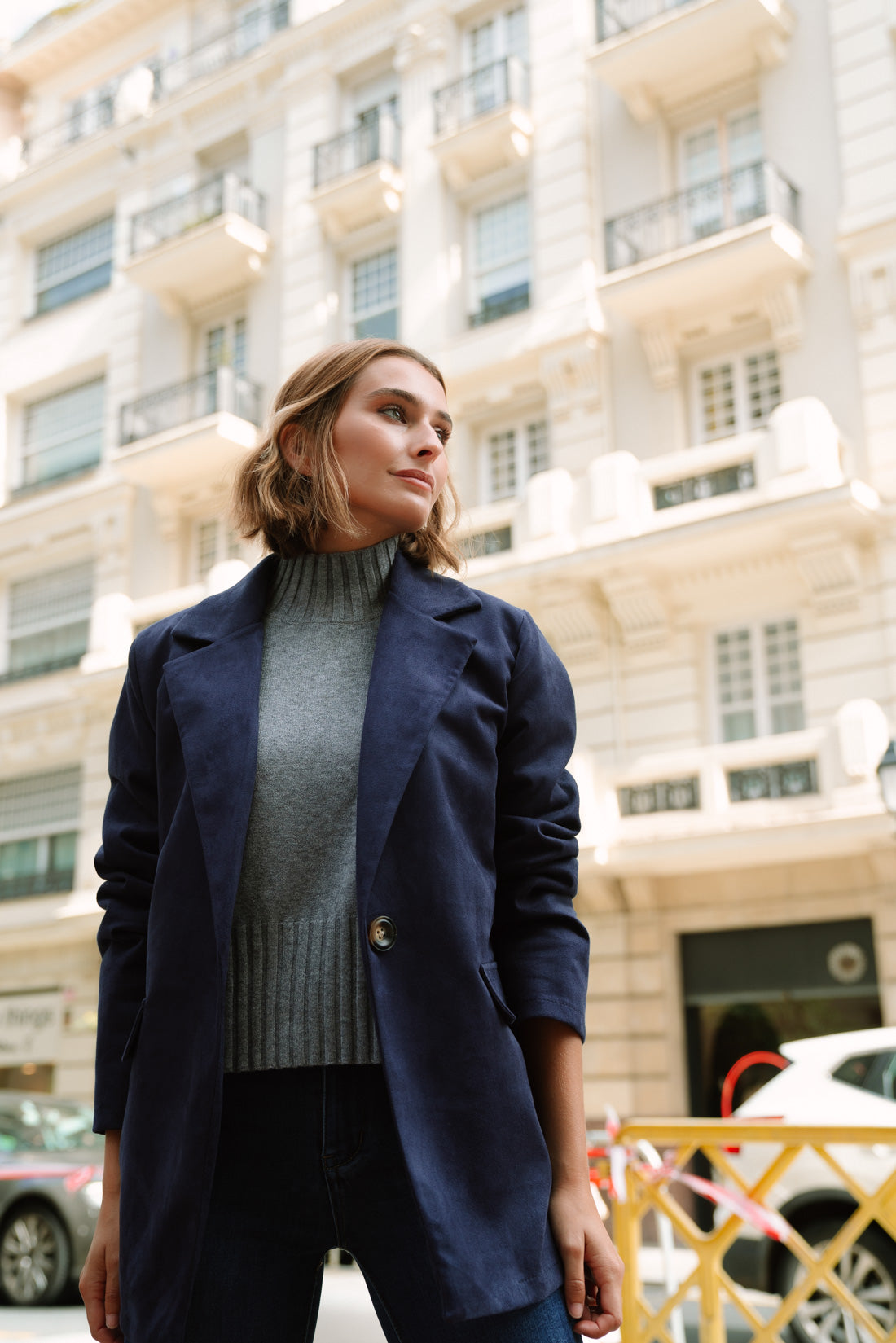 Chaqueta PATRICK antelina negra. Tejido elástico adaptable y cómodo. 92%poliester 8%elastano. T.U. equivalente a S-M (La modelo utiliza T.XS)