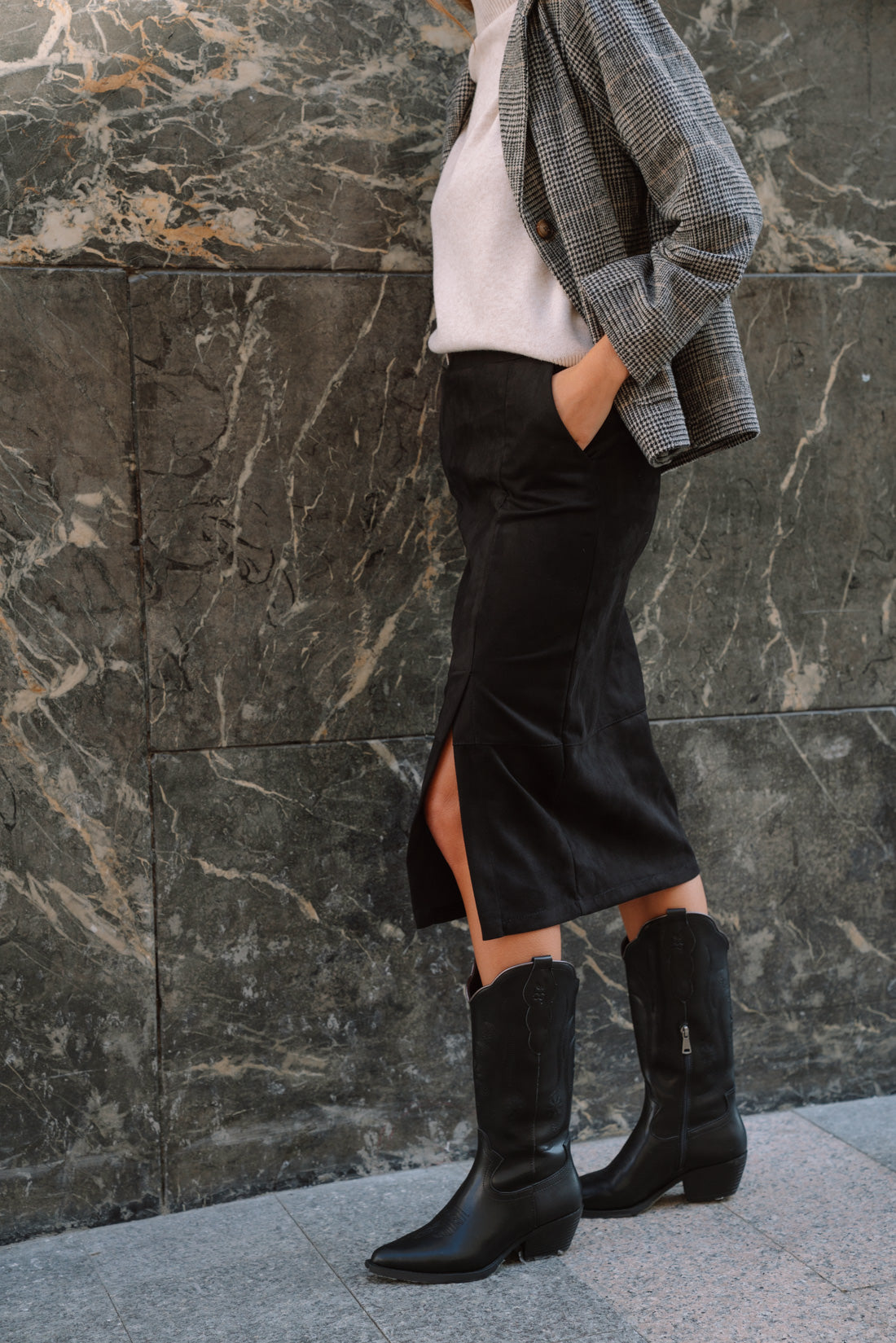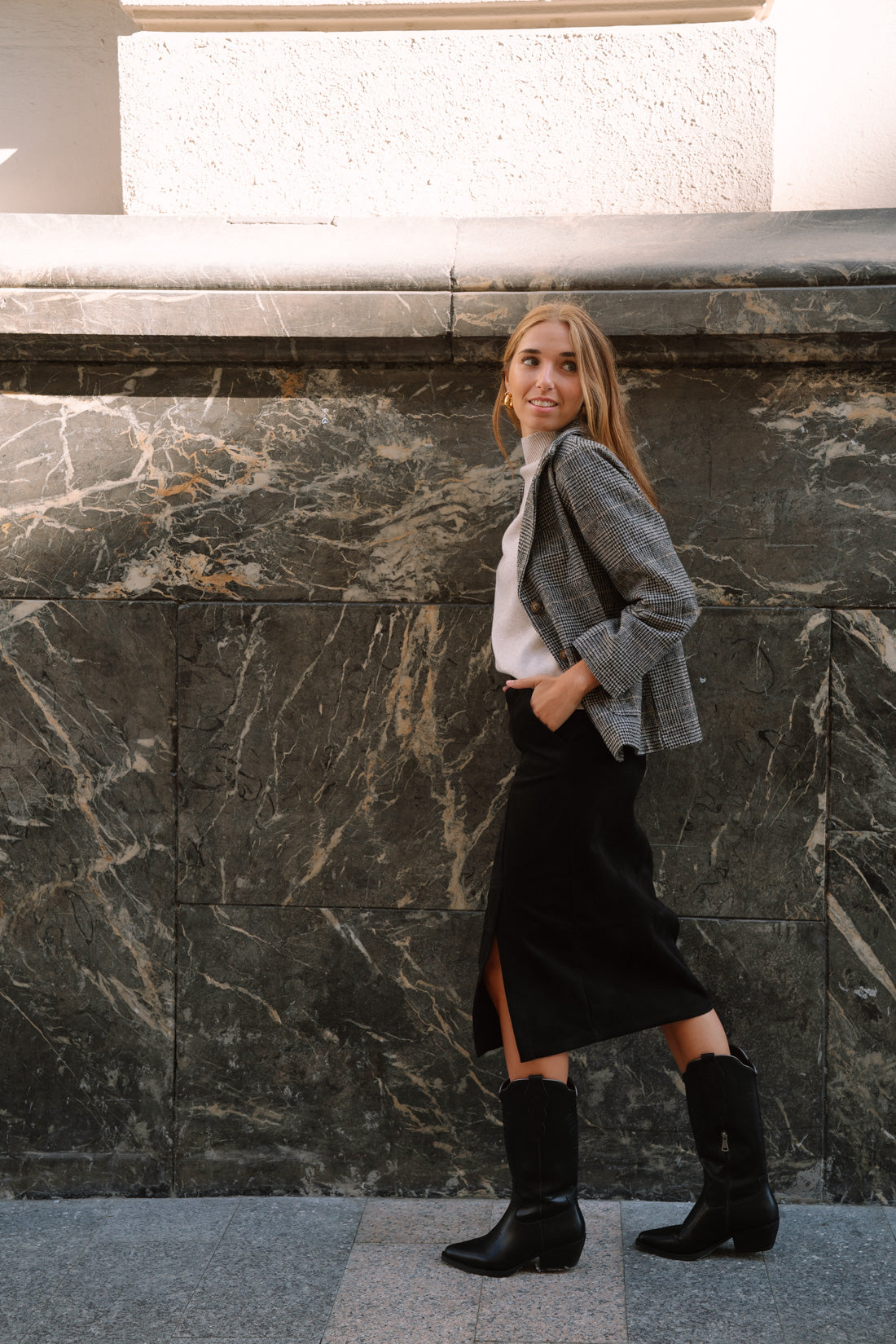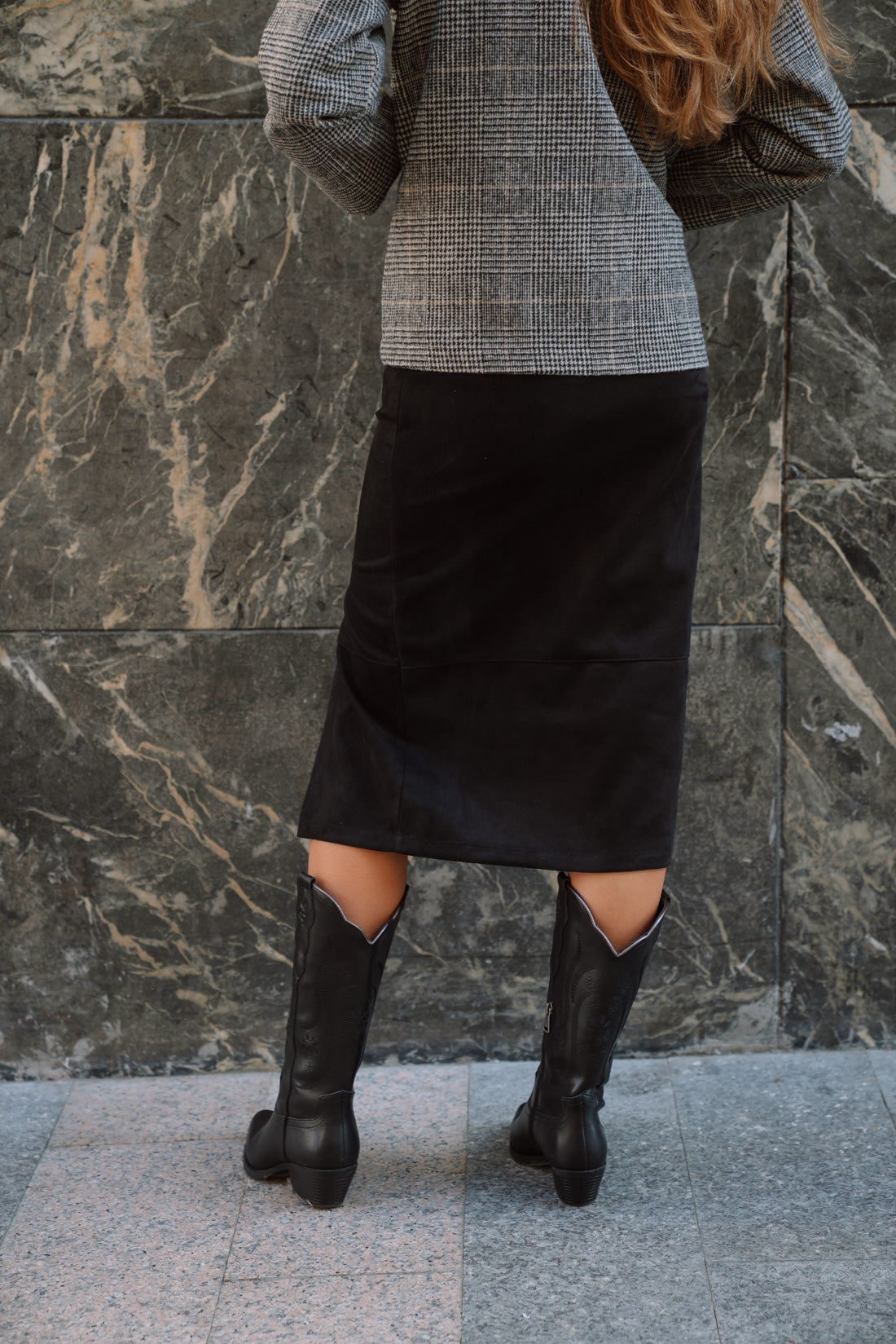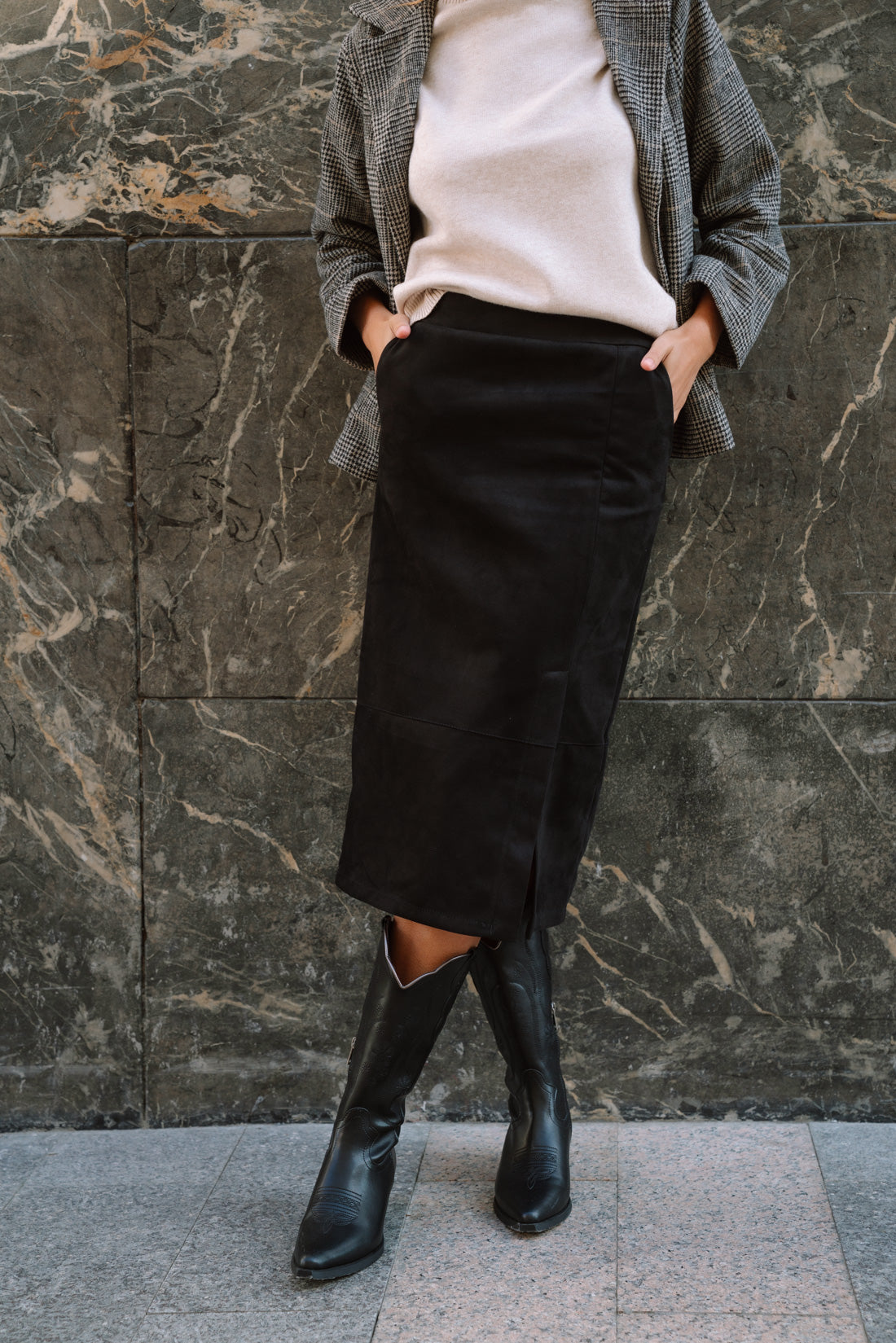 Falda KUR tipo lápiz con tejido de Antolina elástica. Falda con goma en la cintura y pequeña abertura lateral. Una falda femenina, cómoda y versátil para tu fondo de armario. 92% poliéster 8%elastan. T.U. equivalente a T. S-M (La modelo utiliza T.S)