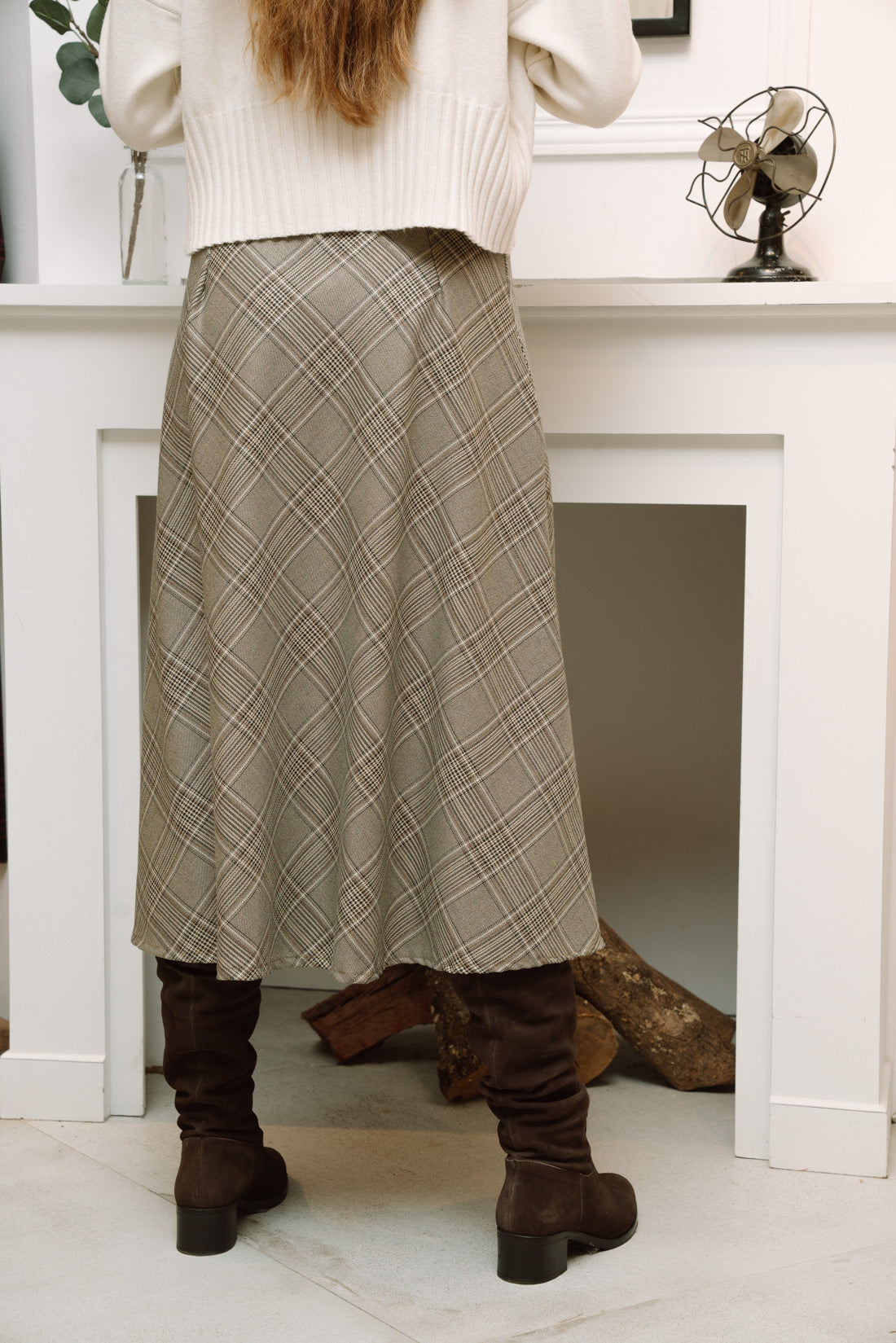 Falda cuadros con goma en la cintura. 64%poliester 34%viscosa 2%elastano. T.U equivalente a T.S-M (La modelo utiliza Talla S)