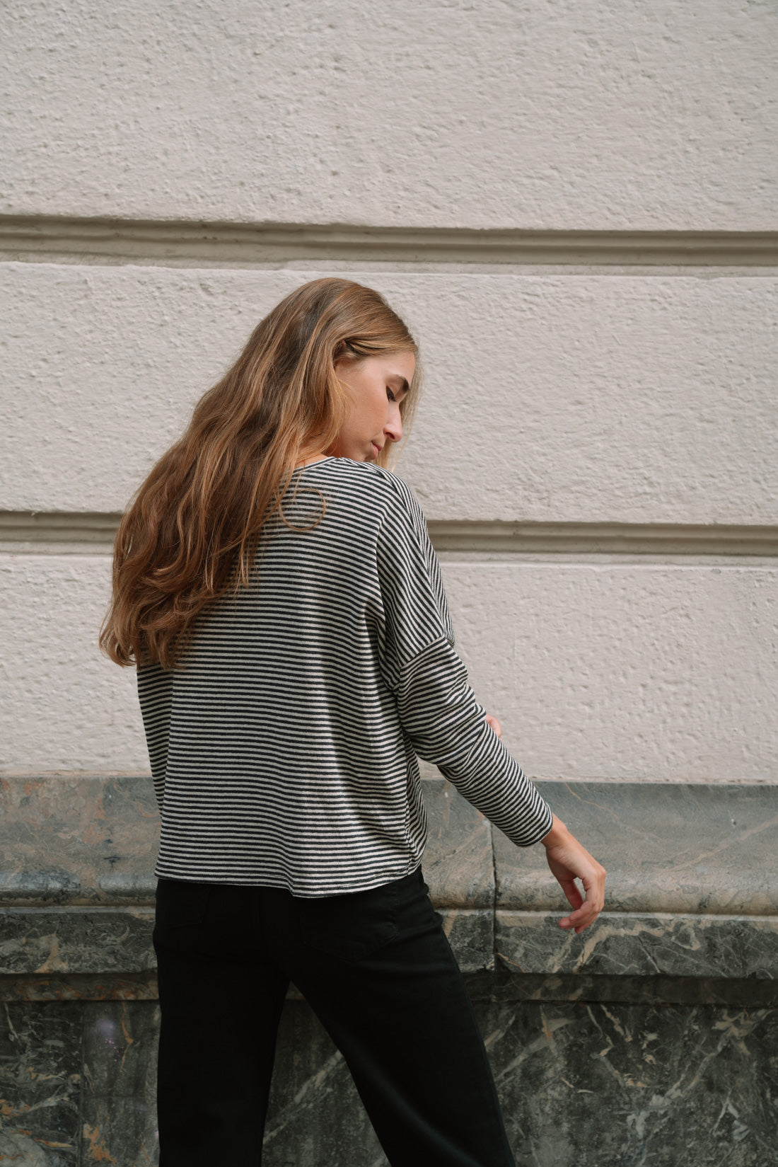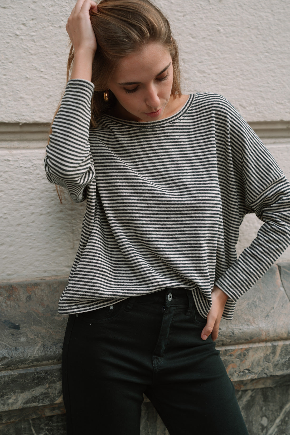 Jersey FRANCIS rayas gris. Cómodo y versátil. 100% algodón. T.U equivalente a S-M (La modelo utiliza T.S)