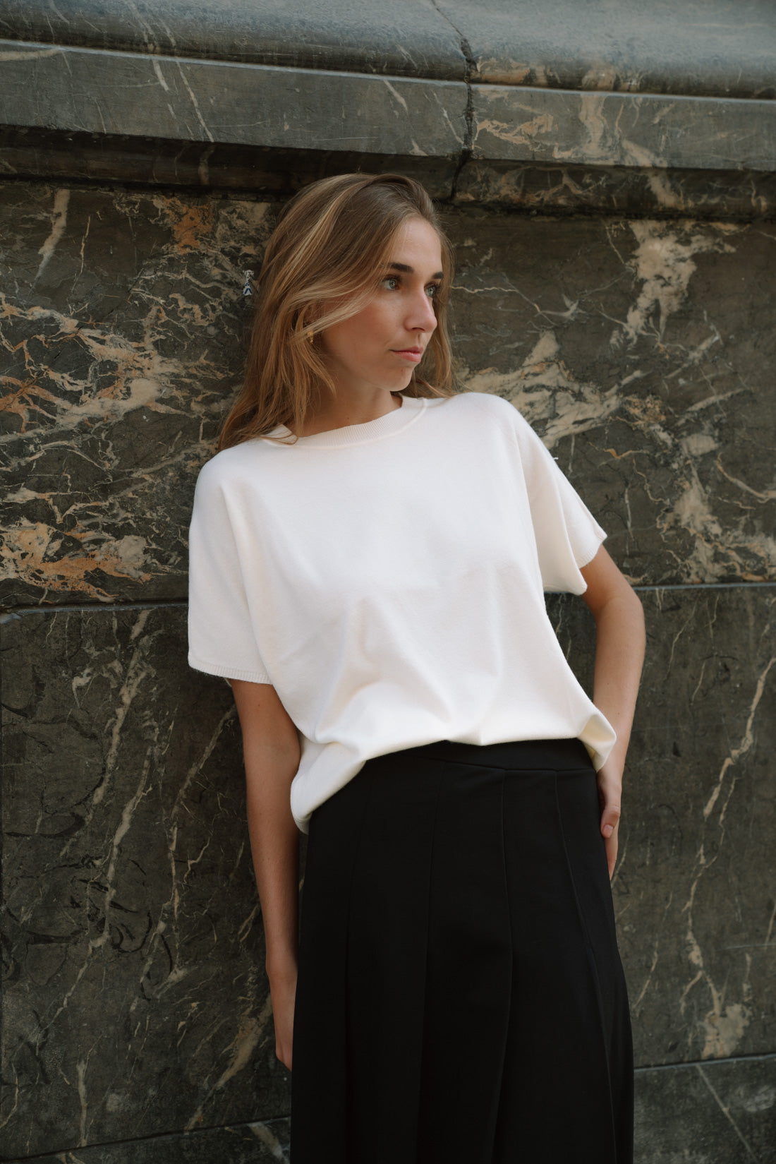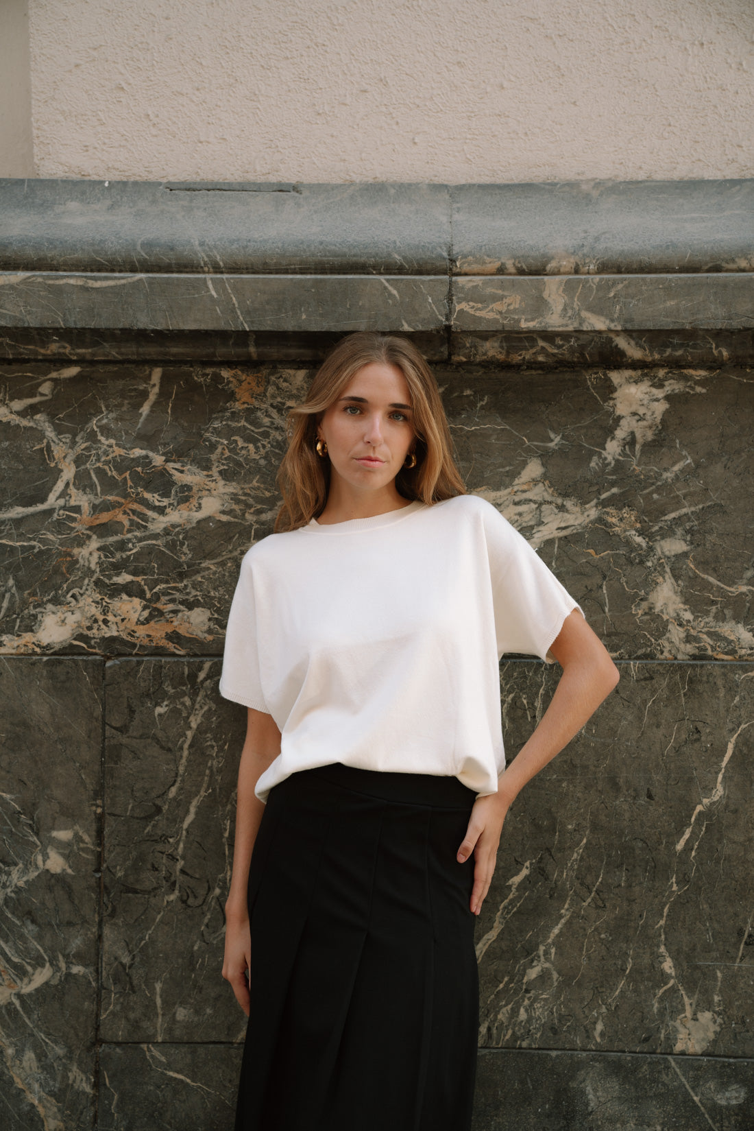 Jersey HITT crudo cuello redondo y manga corta. Un tejido super suave que te va a encantar. 50%viscosa 22%poliester 22%polyamida. T.U. (La modelo utiliza T.S)