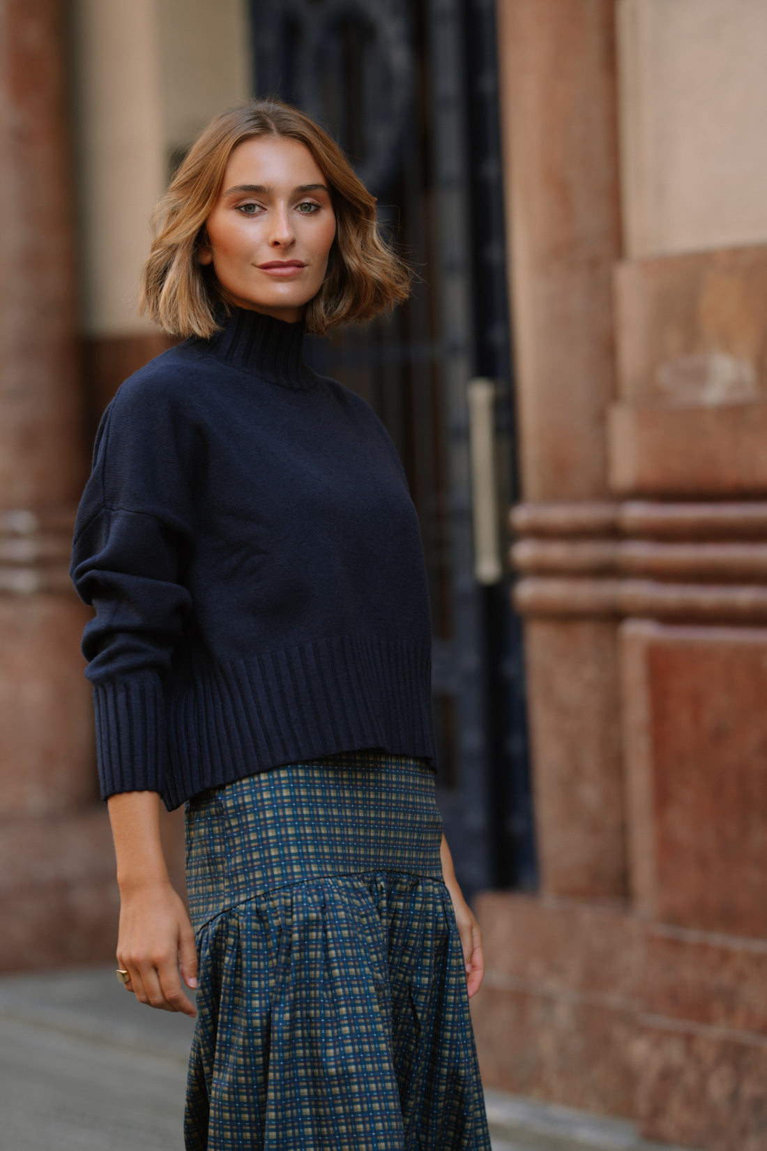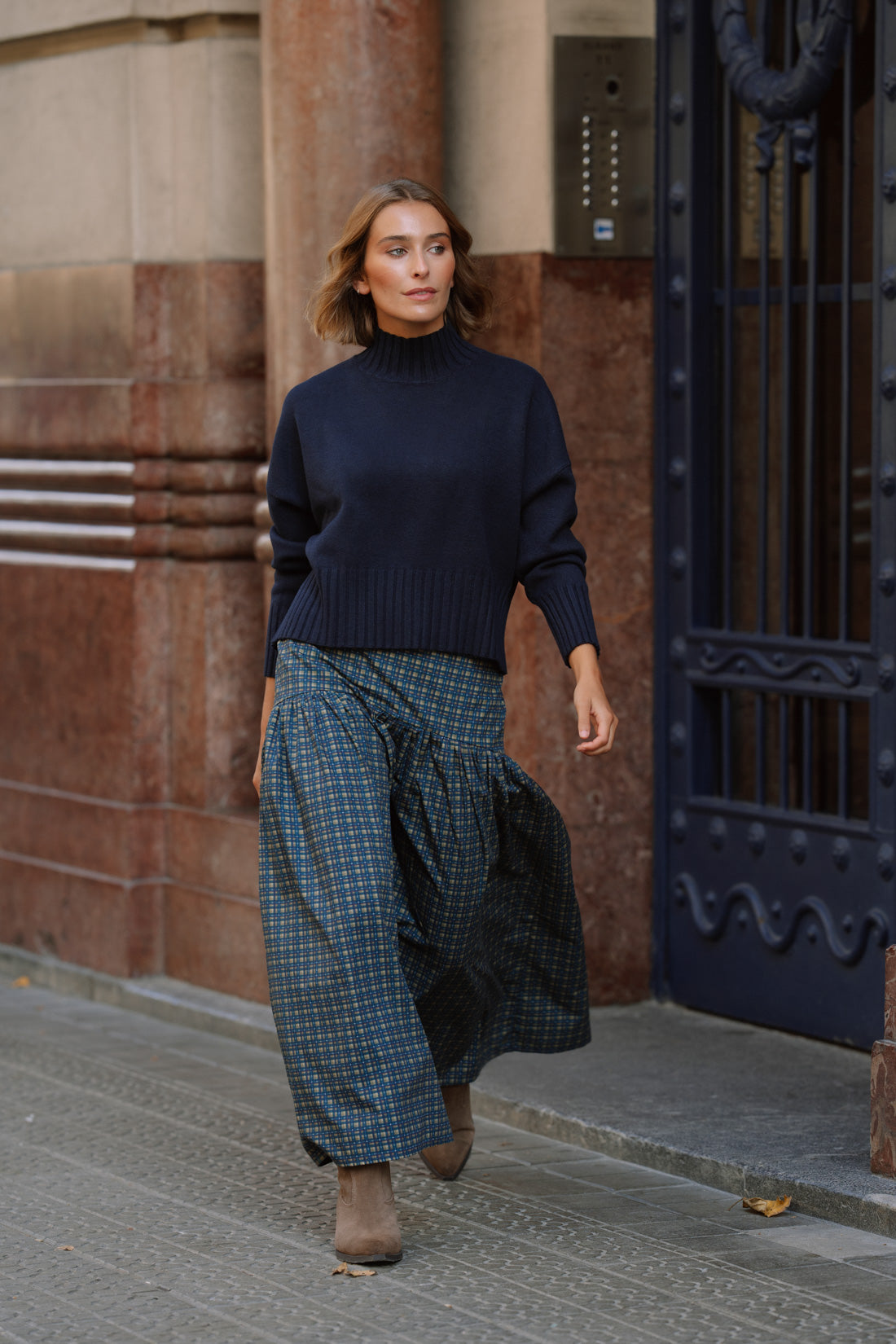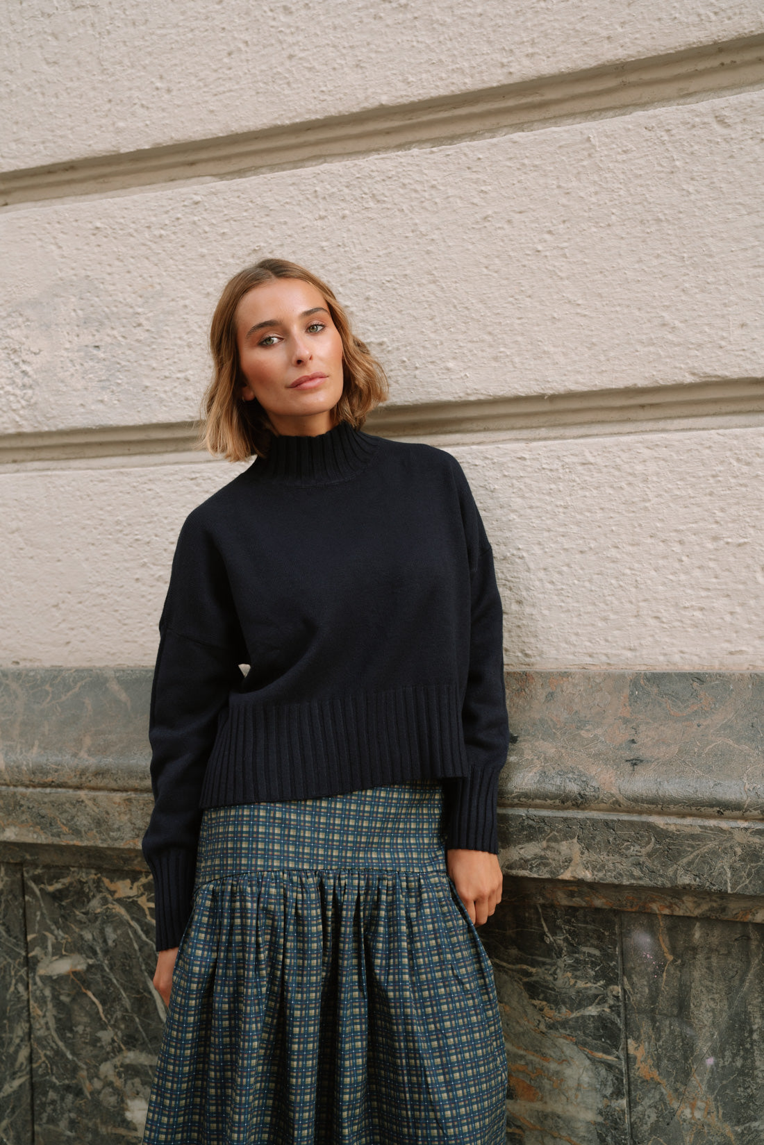 Jersey WINTT marino. Nuestro jersey juvenil mas trolero, la altura perfecta para llevarlo tanto con falda como con tus jeans favoritos. Tejido super gustoso 50%viscosa 28% poliester 22% poliamida. T.U equivalente a XS-S ( La modelo utiliza XS)