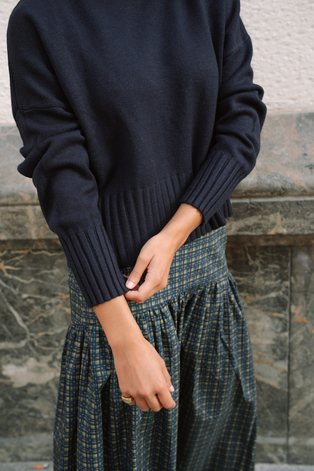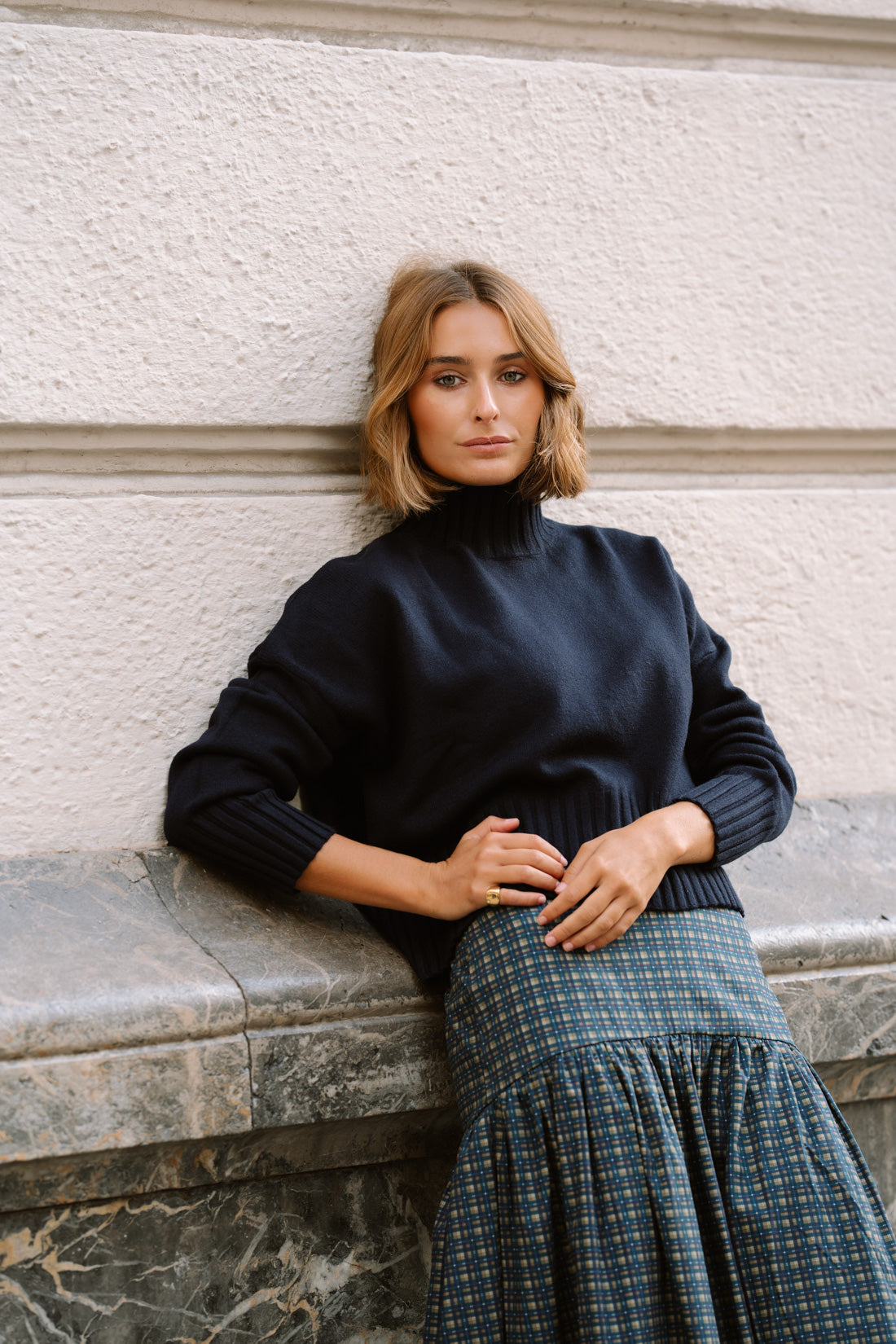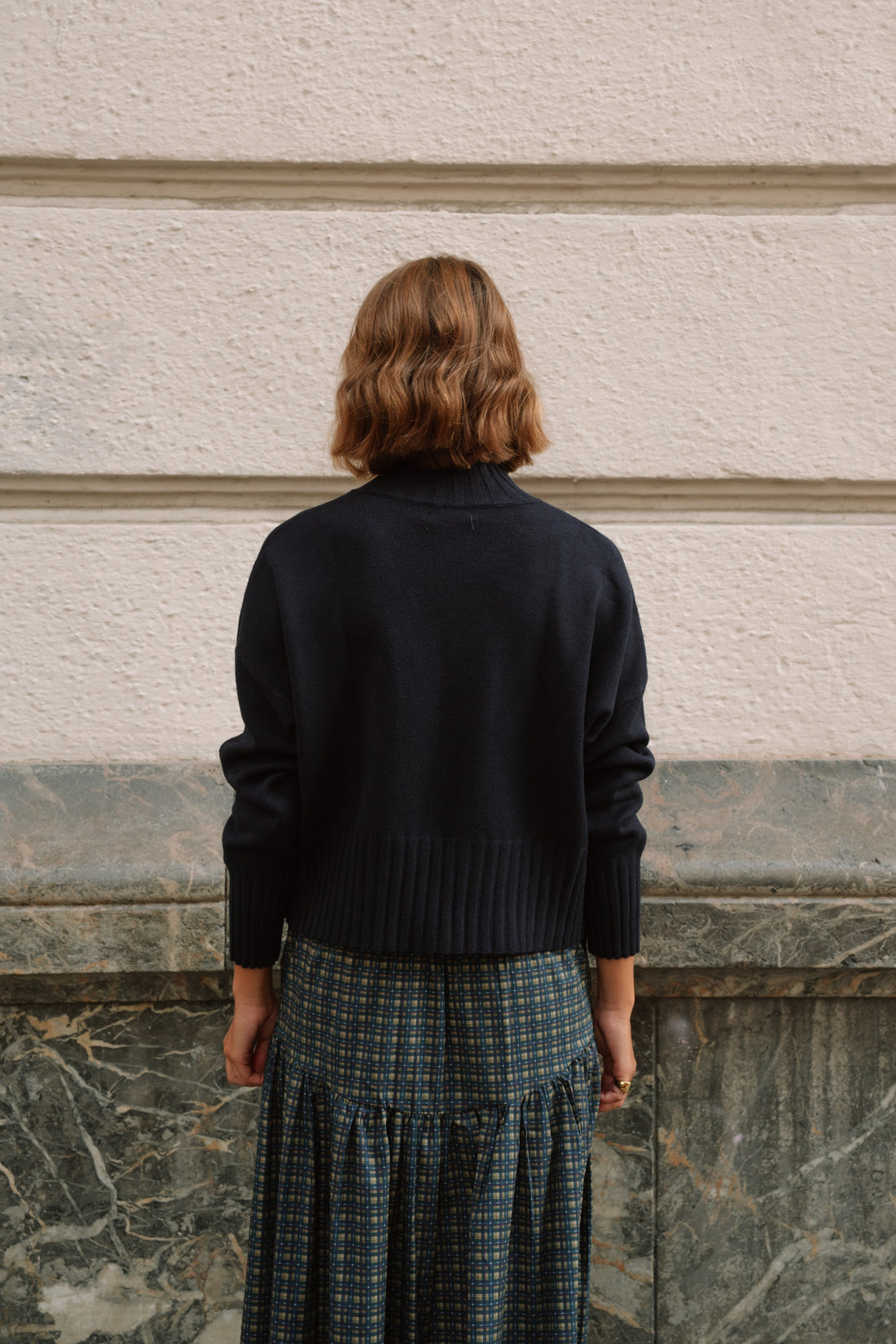 Jersey WINTT marino. Nuestro jersey juvenil mas trolero, la altura perfecta para llevarlo tanto con falda como con tus jeans favoritos. Tejido super gustoso 50%viscosa 28% poliester 22% poliamida. T.U equivalente a XS-S ( La modelo utiliza XS)