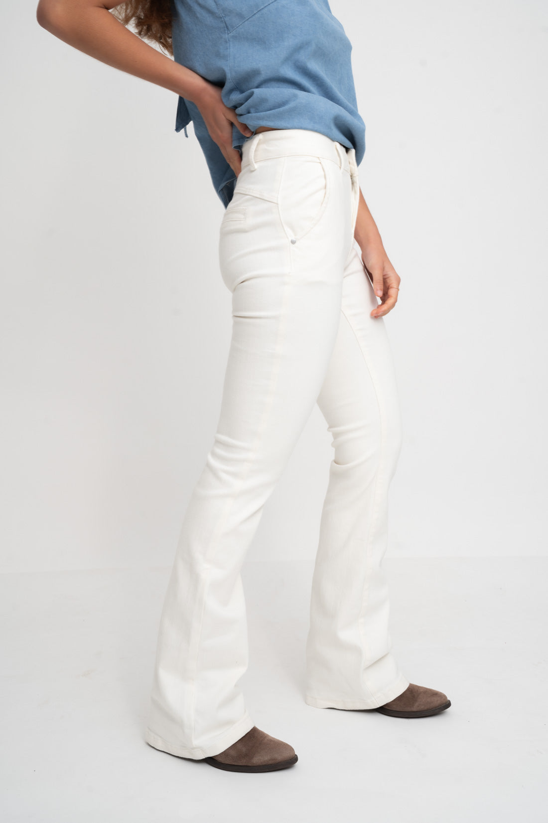 Pantalón vaquero ligeramente acampanado.
