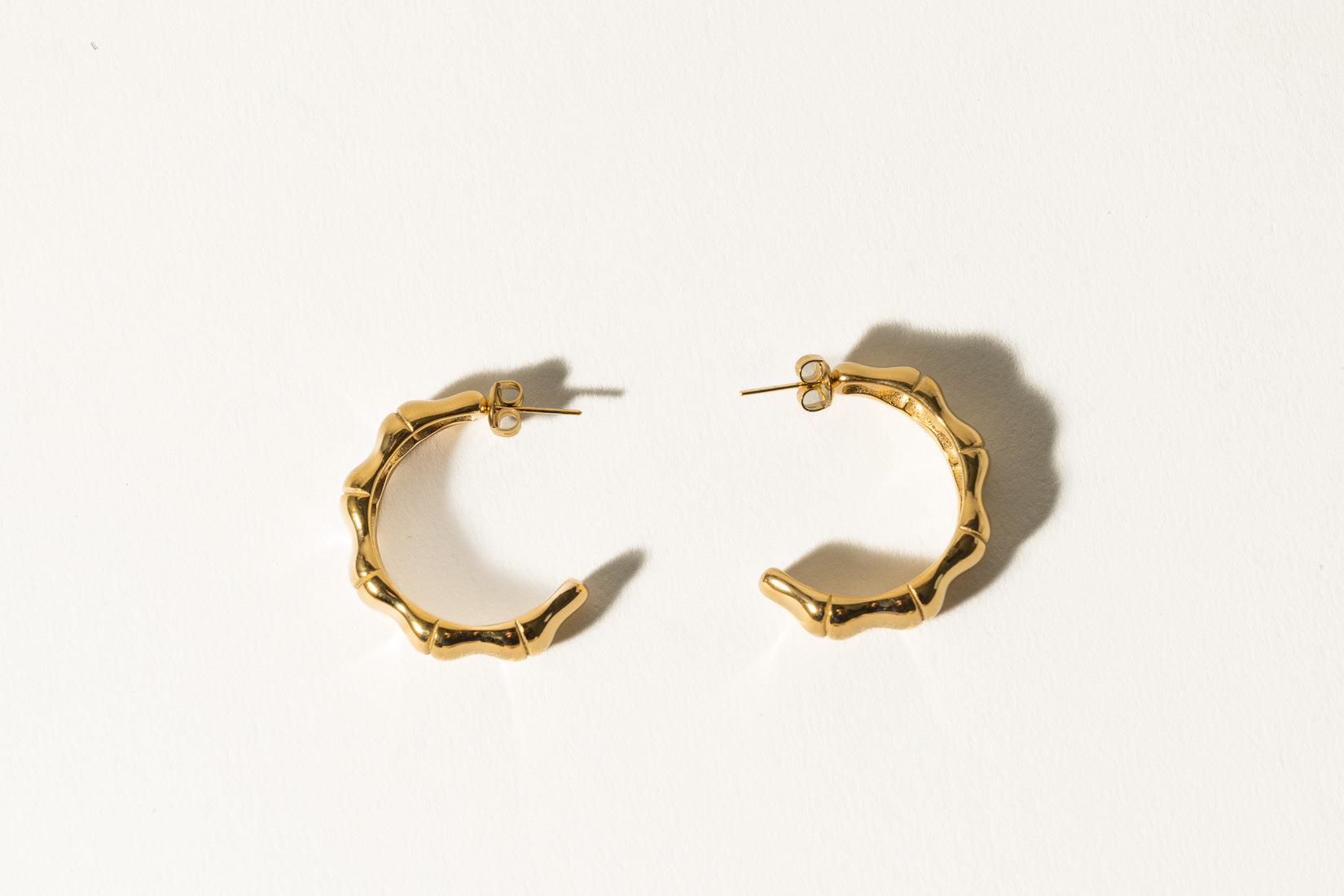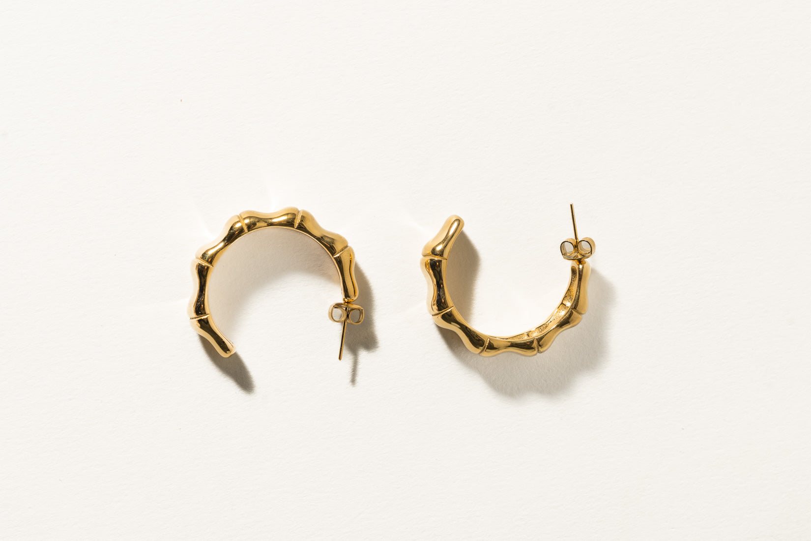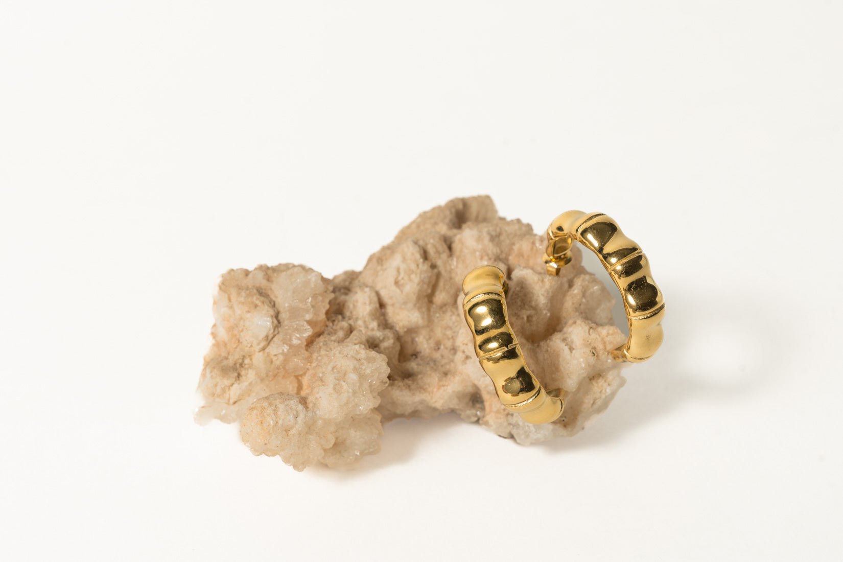 Pendientes aro PVD bañados en oro con forma de bambú.