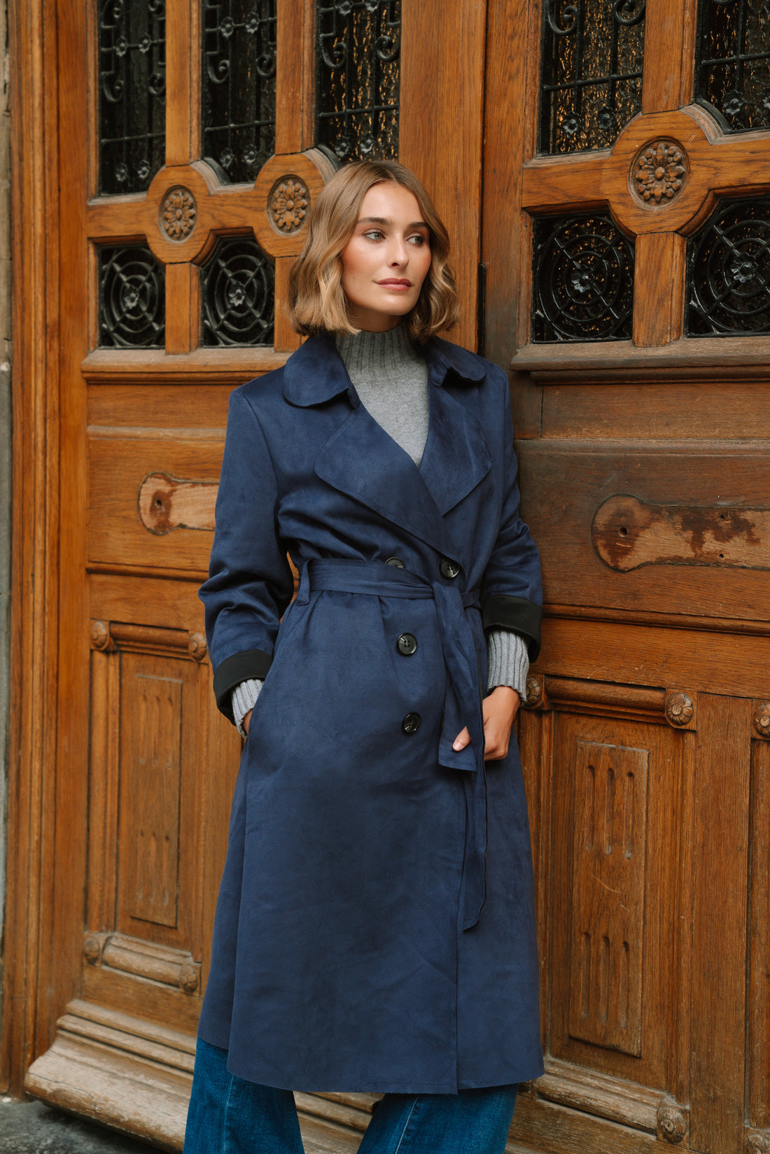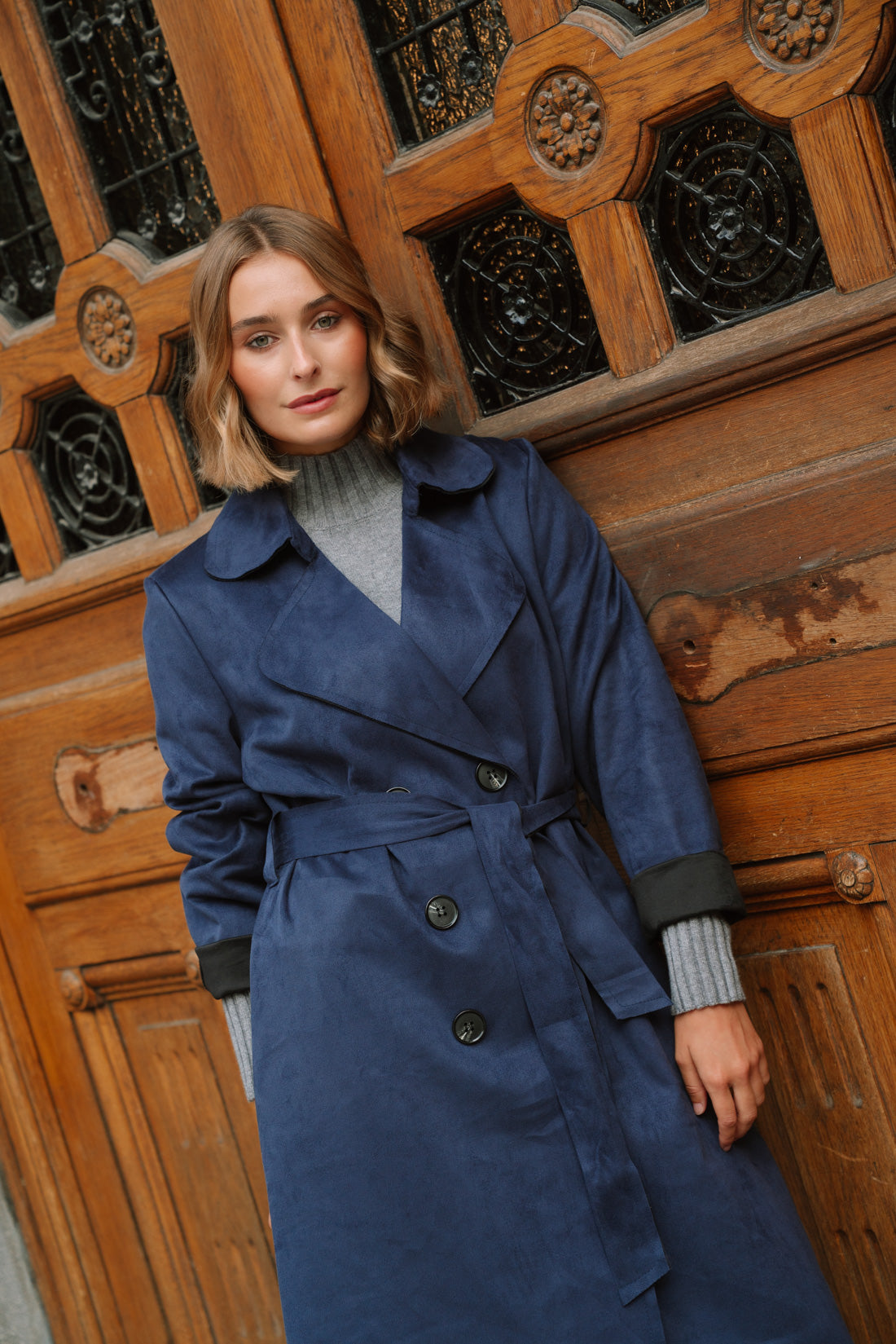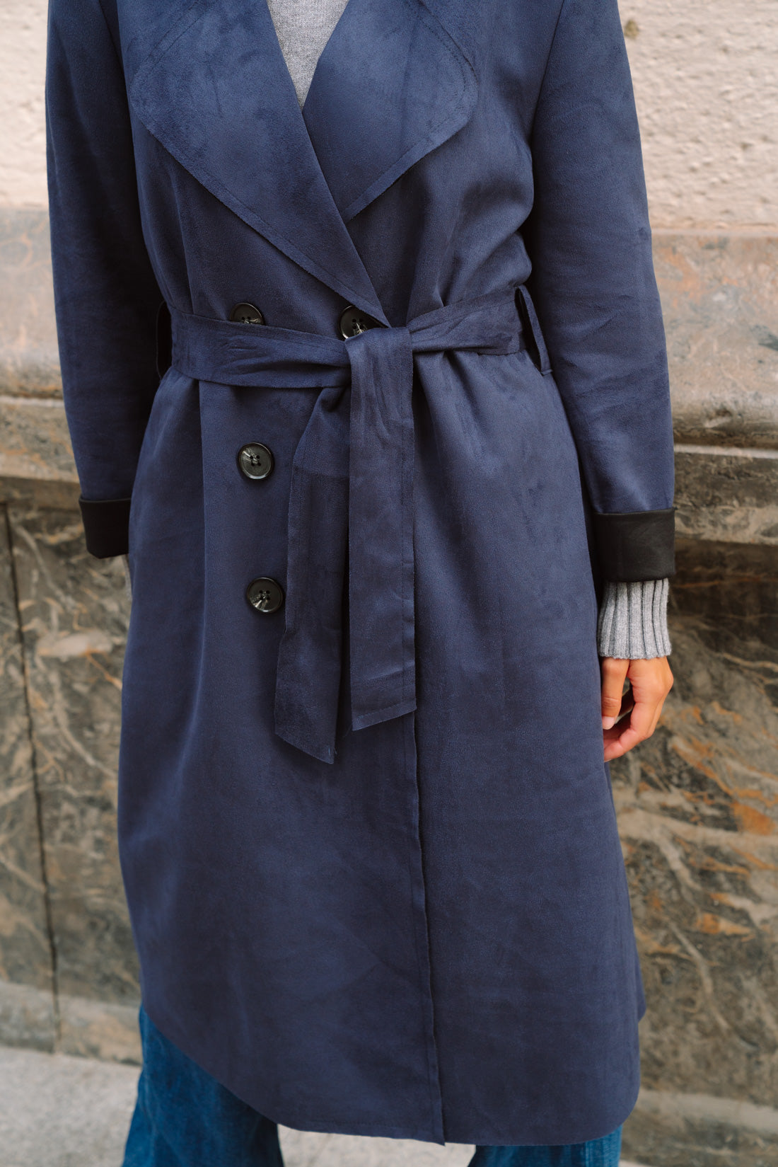 Trench antelina marino. Tejido elástico adaptable y cómodo. 92%poliester 8%elastano. T.U. equivalente a S-M (La modelo utiliza T.XS)