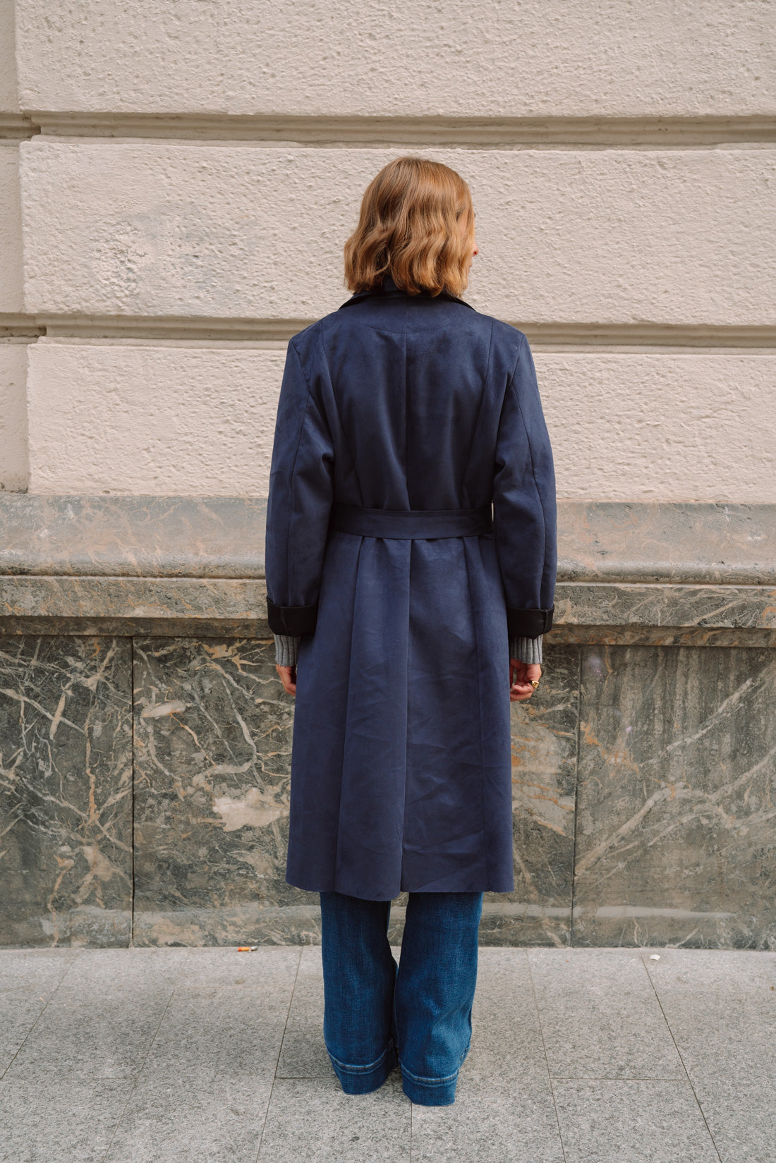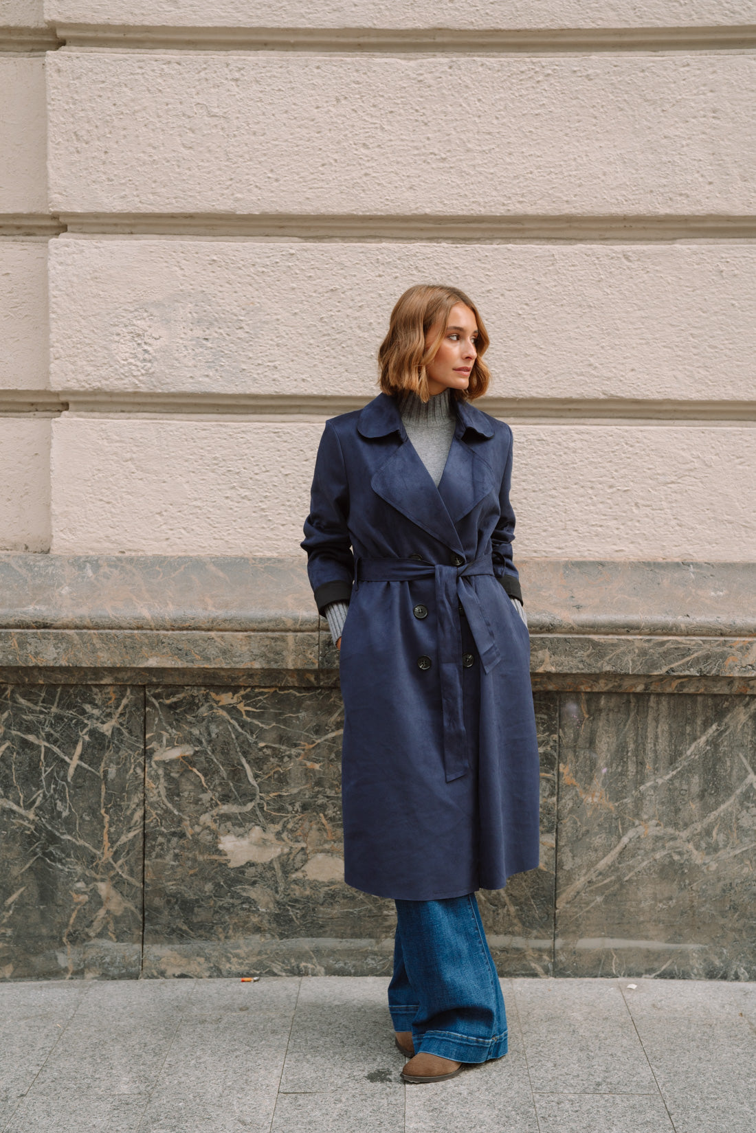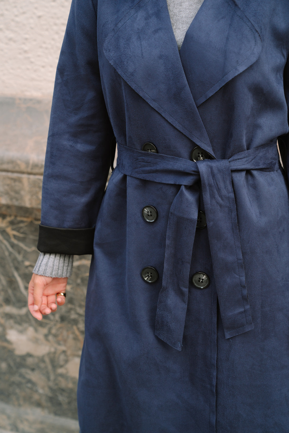 Trench antelina marino. Tejido elástico adaptable y cómodo. 92%poliester 8%elastano. T.U. equivalente a S-M (La modelo utiliza T.XS)